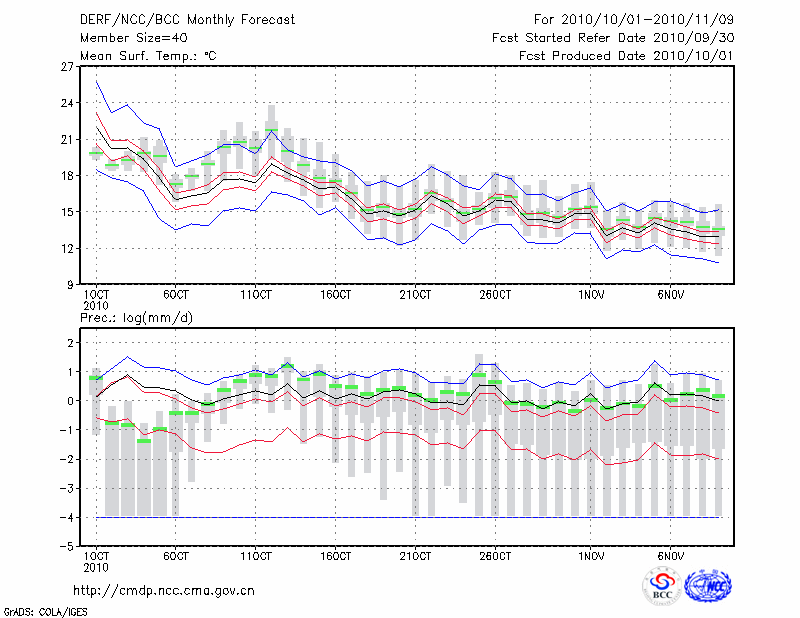 恩 施 (LAT:30.28 LON:109.47) 2010-10-01        预测