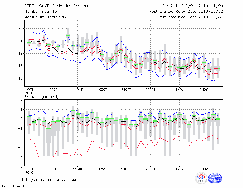 东 台 (LAT:32.87 LON:120.32) 2010-10-01        预测