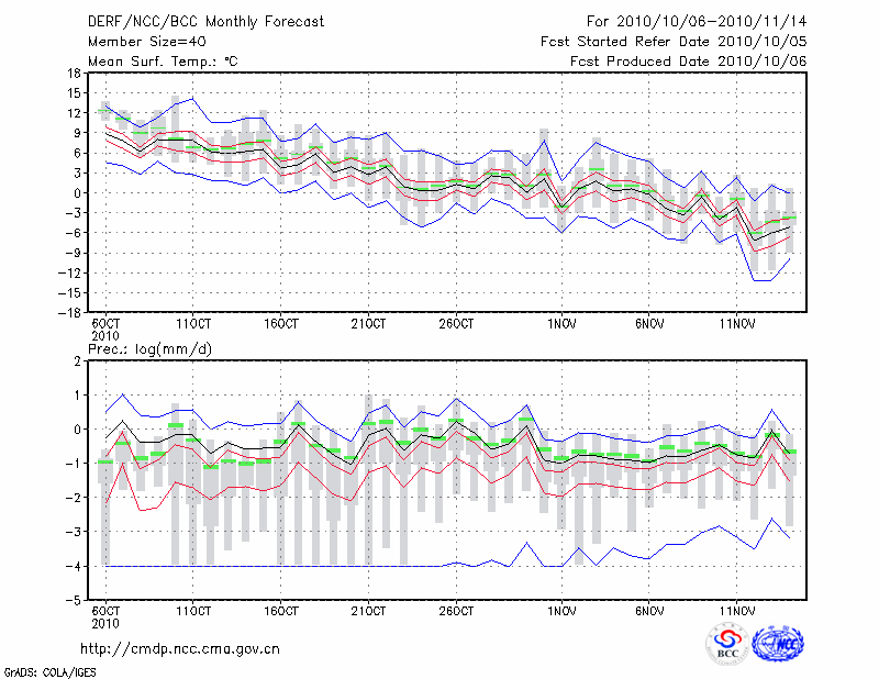 牡 丹 江 (LAT:44.57 LON:129.60) 2010-10-06        预测