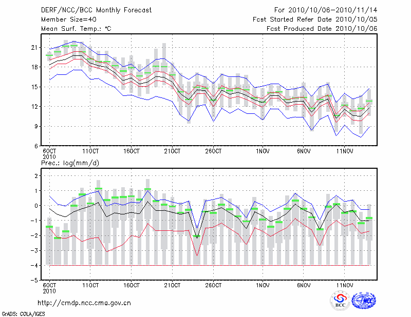 青 岛 (LAT:36.07 LON:120.33) 2010-10-06        预测