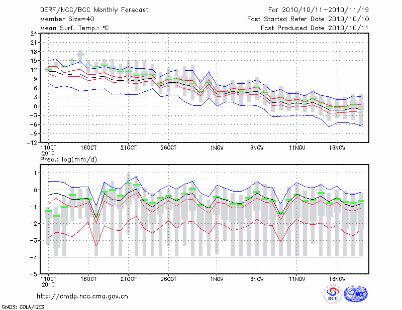 乌 苏 (LAT:44.43 LON:84.66) 2010-10-11        预测