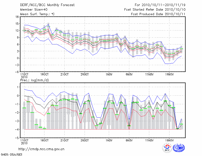银 川 (LAT:38.48 LON:106.22) 2010-10-11        预测