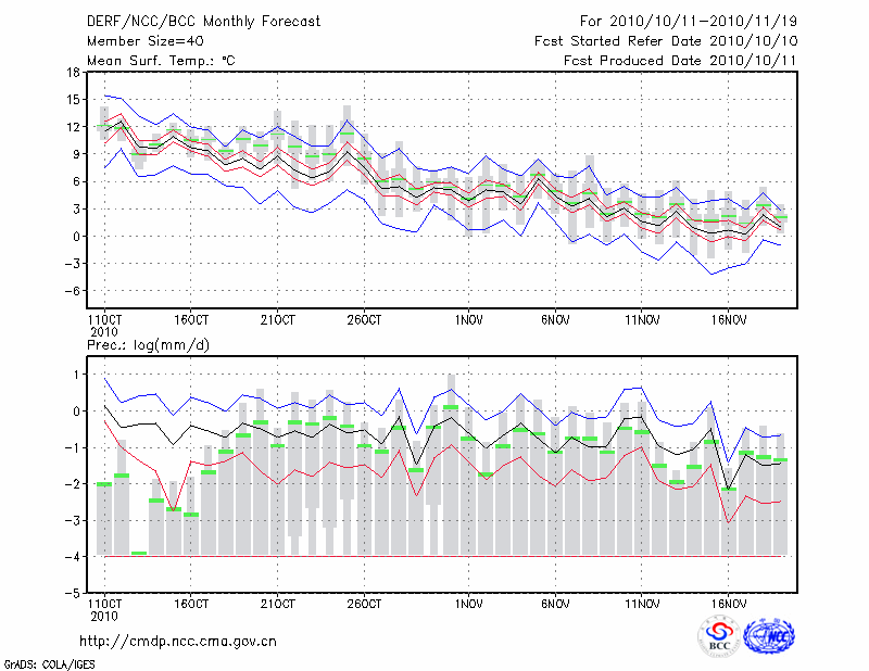 榆 林 (LAT:38.23 LON:109.70) 2010-10-11        预测