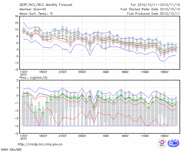 西 峰 镇 (LAT:35.73 LON:107.63) 2010-10-11        预测