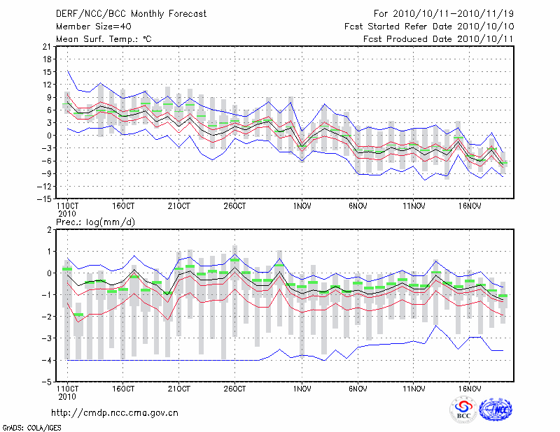 牡 丹 江 (LAT:44.57 LON:129.60) 2010-10-11        预测