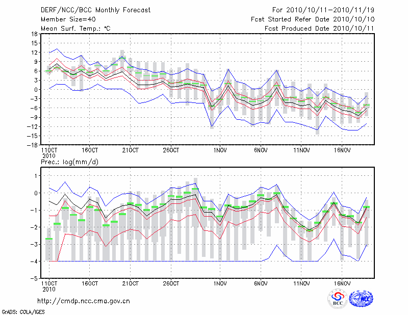 锡林浩特 (LAT:43.95 LON:116.07) 2010-10-11        预测