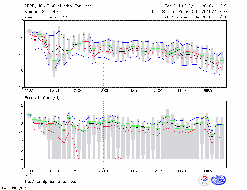 景 洪 (LAT:22.02 LON:100.80) 2010-10-11        预测