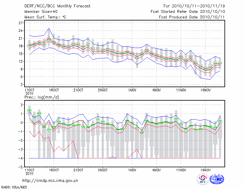 安 庆 (LAT:30.53 LON:117.05) 2010-10-11        预测