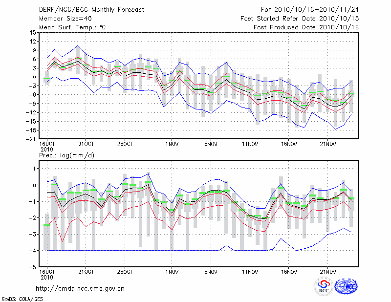 锡林浩特 (LAT:43.95 LON:116.07) 2010-10-16        预测