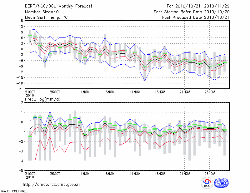 哈 尔 滨 (LAT:45.75 LON:126.77) 2010-10-21        预测