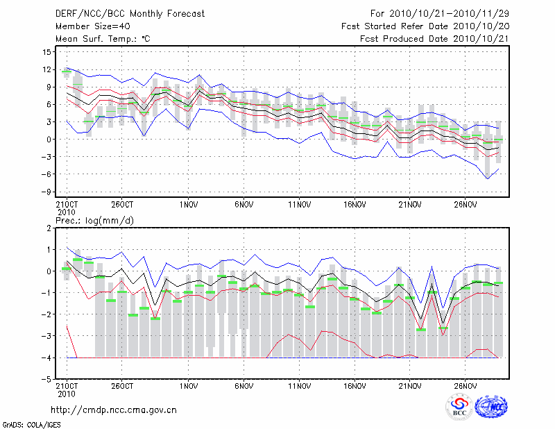 西 峰 镇 (LAT:35.73 LON:107.63) 2010-10-21        预测