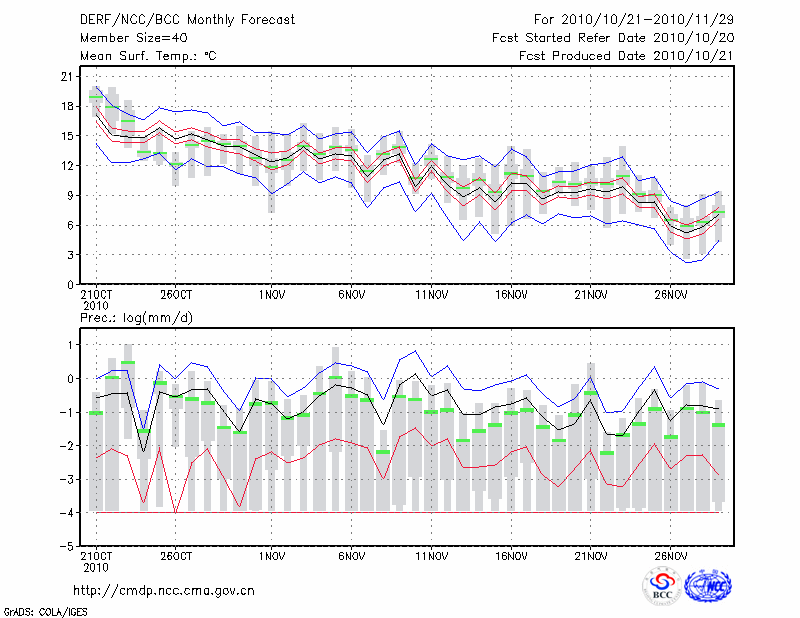 青 岛 (LAT:36.07 LON:120.33) 2010-10-21        预测