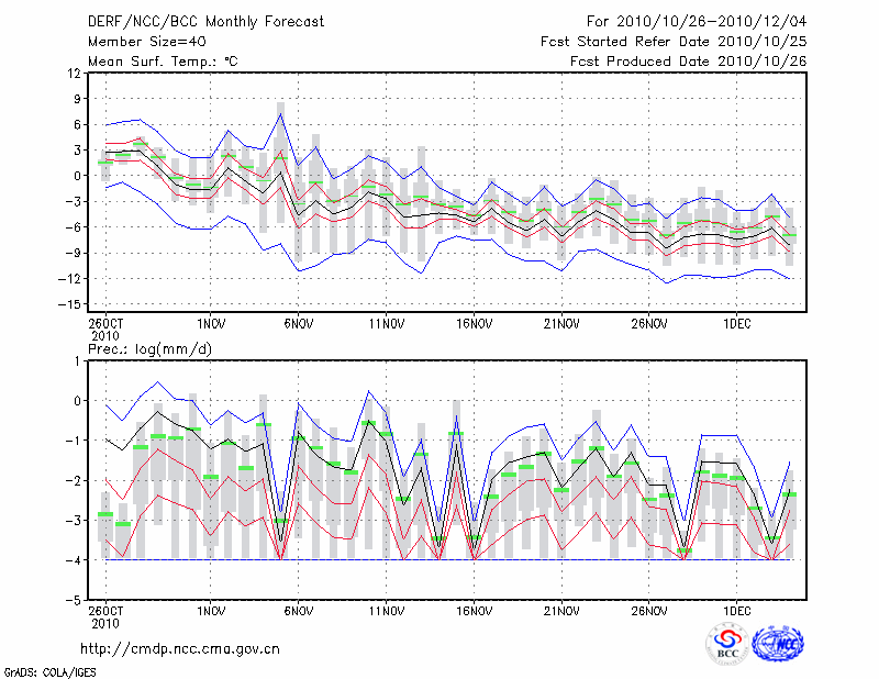 乌兰浩特 (LAT:46.08 LON:122.05) 2010-10-26        预测