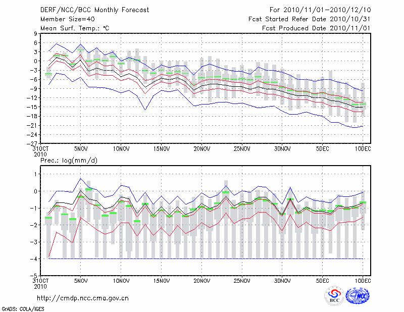 哈 尔 滨 (LAT:45.75 LON:126.77) 2010-11-01        预测