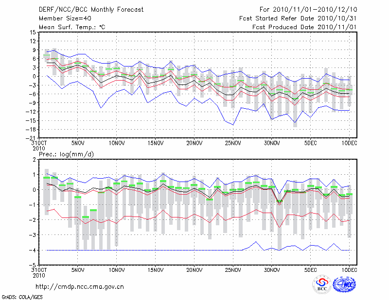 塔 城 (LAT:46.73 LON:83.00) 2010-11-01        预测