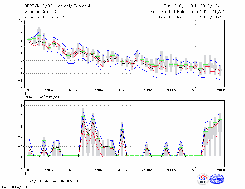 若 羌 (LAT:39.03 LON:88.17) 2010-11-01        预测