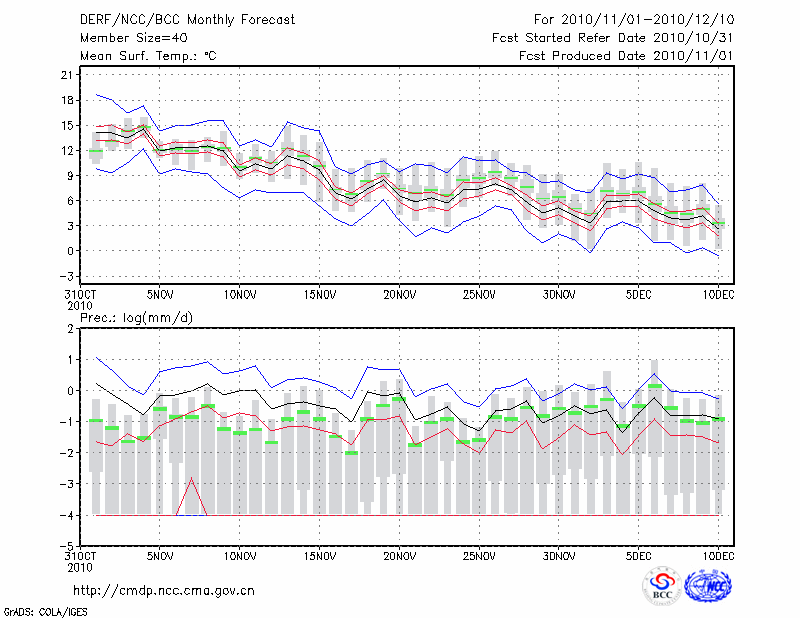 蚌 埠 (LAT:32.95 LON:117.37) 2010-11-01        预测