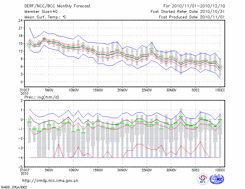 杭 州 (LAT:30.23 LON:120.17) 2010-11-01        预测