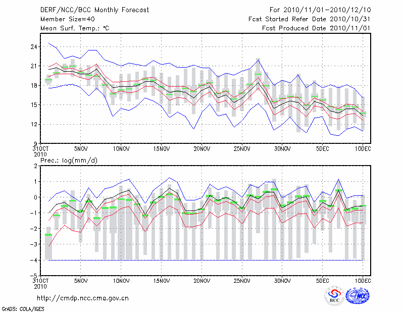 福 州 (LAT:26.08 LON:119.28) 2010-11-01        预测