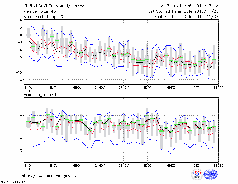 牡 丹 江 (LAT:44.57 LON:129.60) 2010-11-06        预测