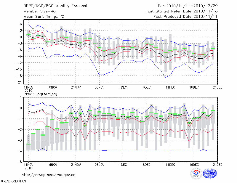 乌 苏 (LAT:44.43 LON:84.66) 2010-11-11        预测