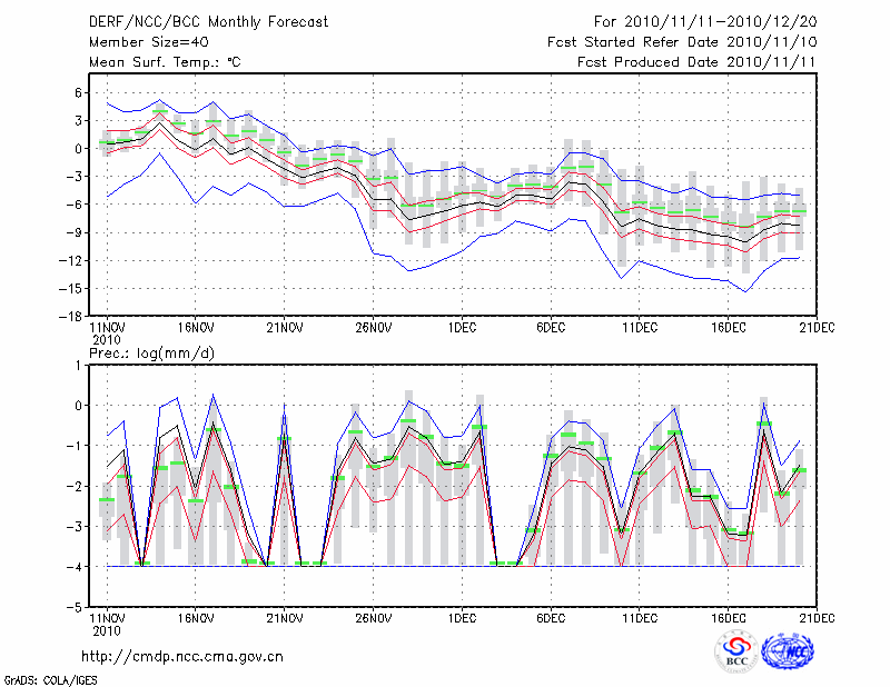 哈 密 (LAT:42.82 LON:93.52) 2010-11-11        预测