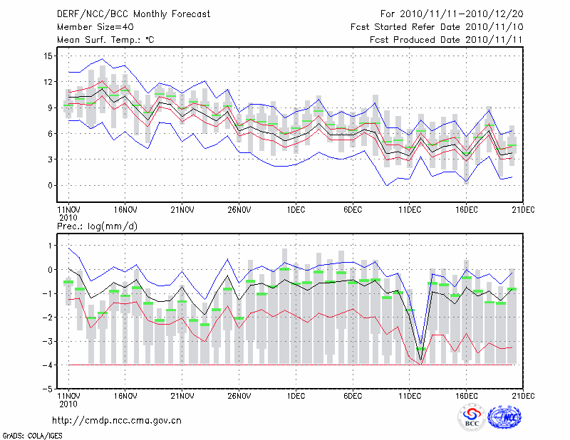 青 岛 (LAT:36.07 LON:120.33) 2010-11-11        预测