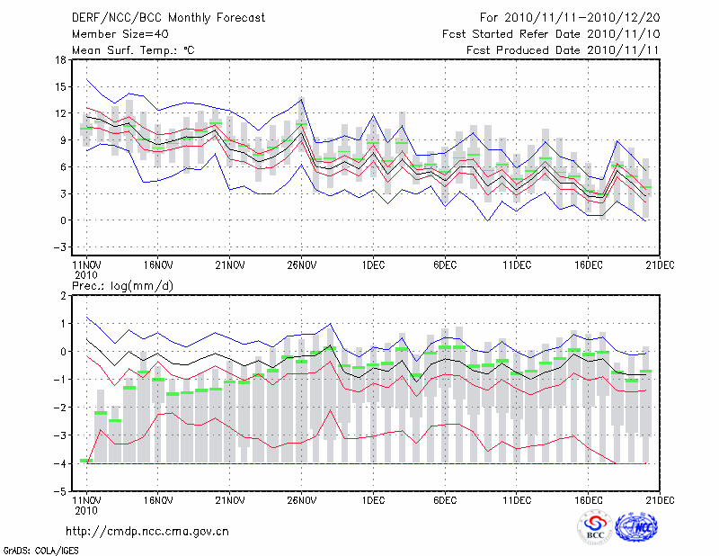南 京 (LAT:32.00 LON:118.80) 2010-11-11        预测