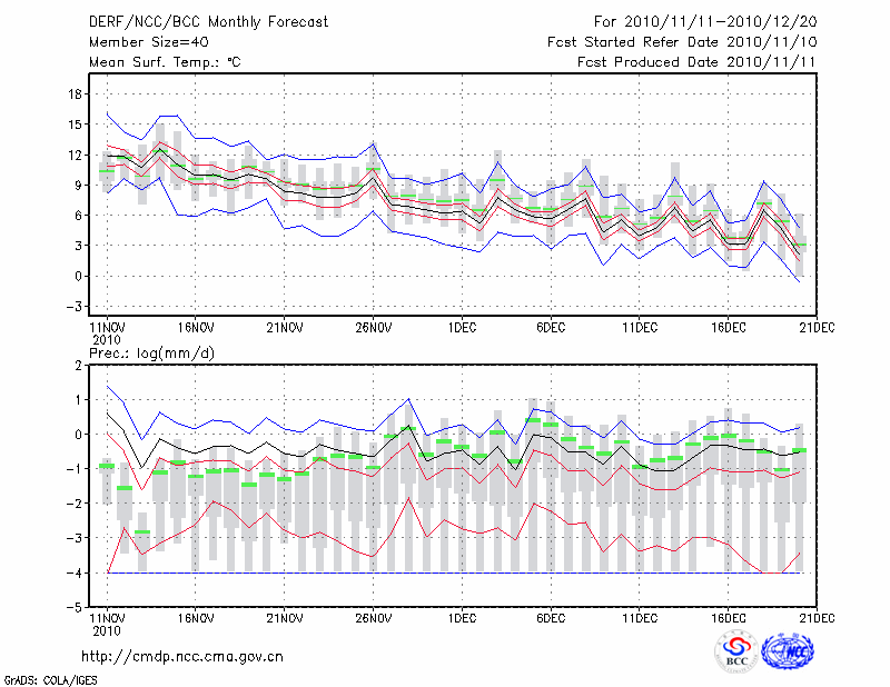 东 台 (LAT:32.87 LON:120.32) 2010-11-11        预测