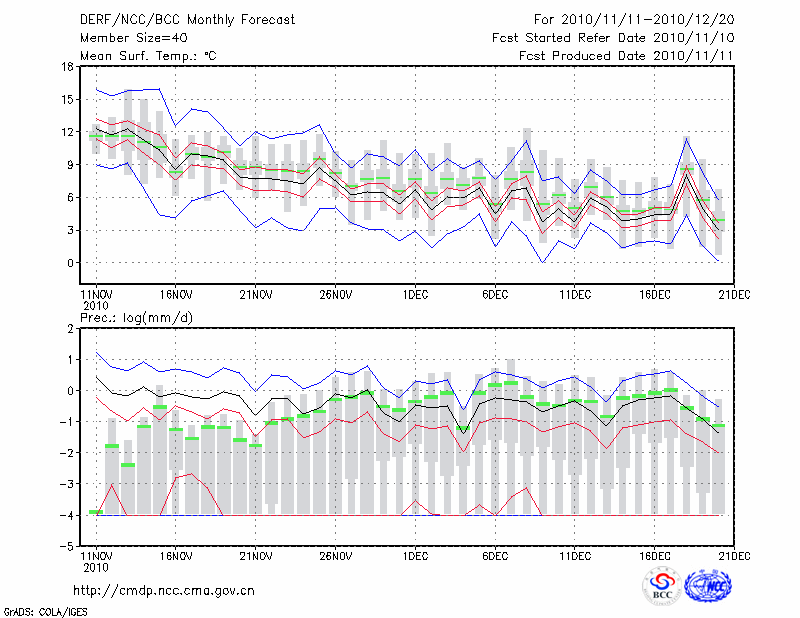 合 肥 (LAT:31.87 LON:117.23) 2010-11-11        预测