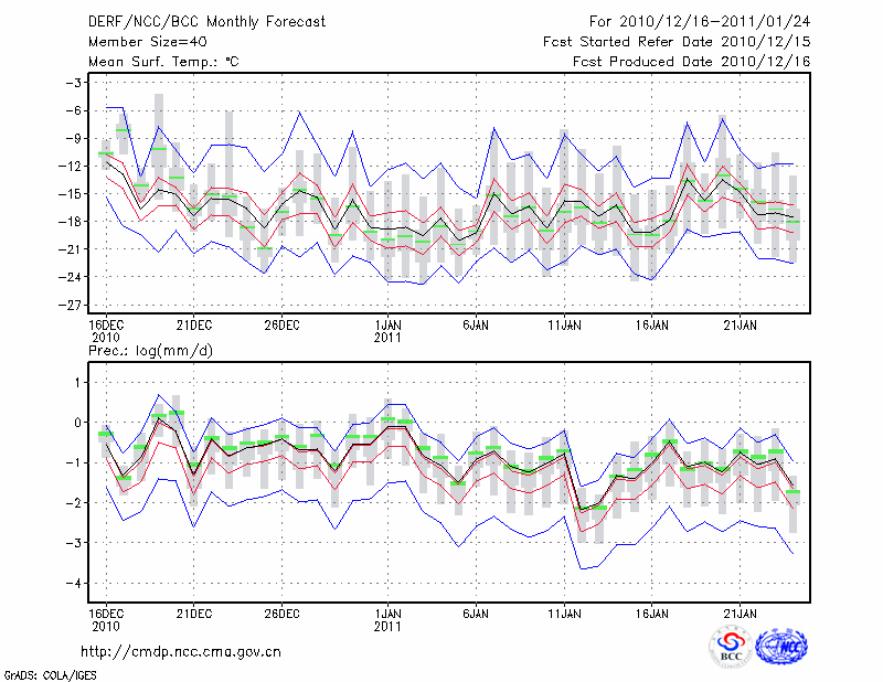 牡 丹 江 (LAT:44.57 LON:129.60) 2010-12-16        预测