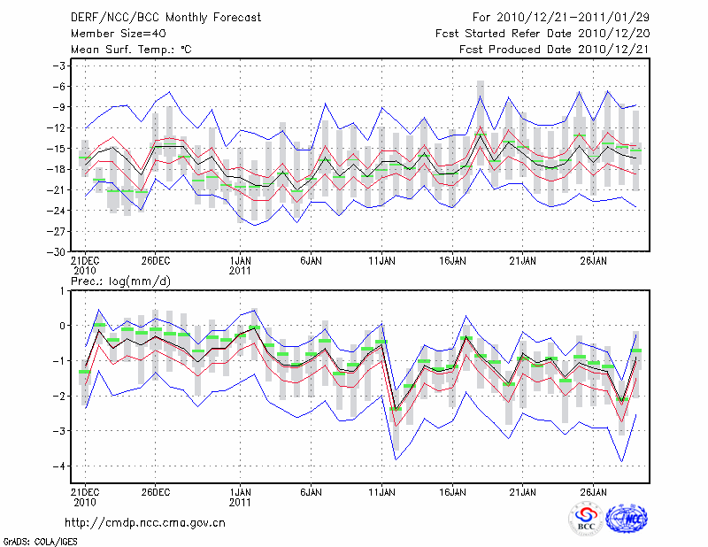 牡 丹 江 (LAT:44.57 LON:129.60) 2010-12-21        预测