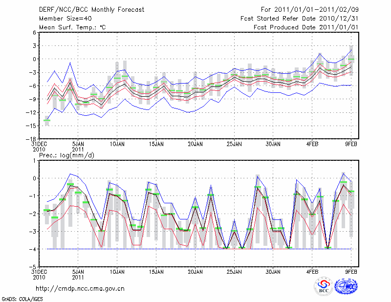 若 羌 (LAT:39.03 LON:88.17) 2011-01-01        预测