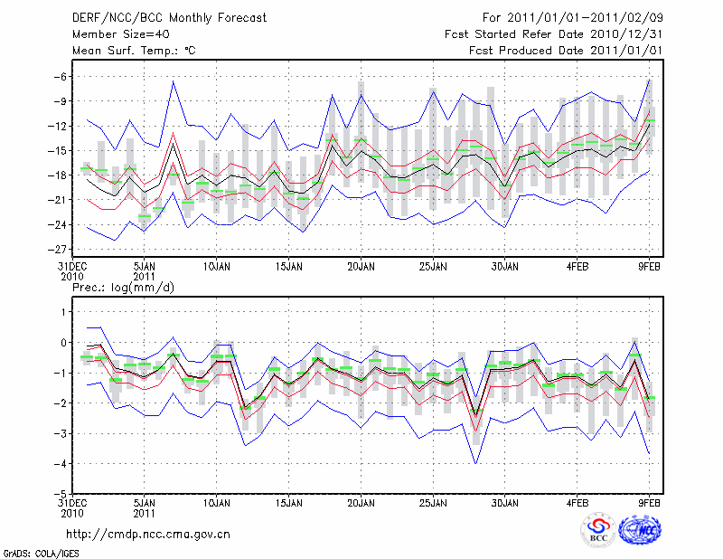 牡 丹 江 (LAT:44.57 LON:129.60) 2011-01-01        预测