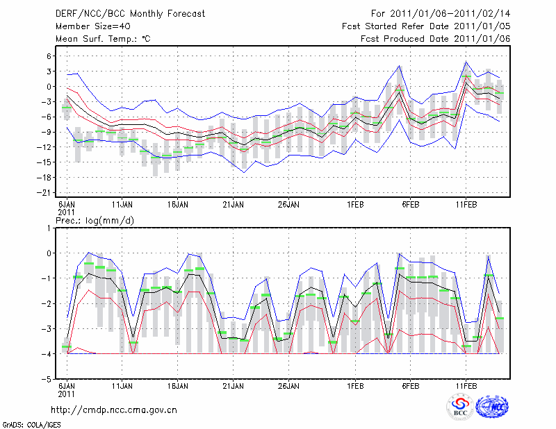 银 川 (LAT:38.48 LON:106.22) 2011-01-06        预测