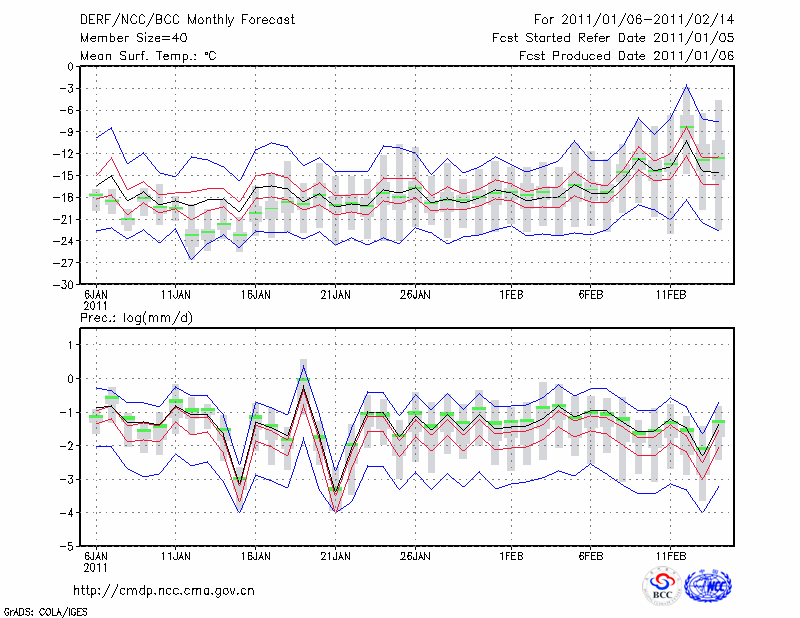 锡林浩特 (LAT:43.95 LON:116.07) 2011-01-06        预测