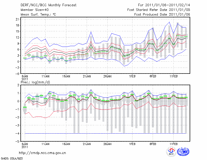 岳 阳 (LAT:29.38 LON:113.08) 2011-01-06        预测