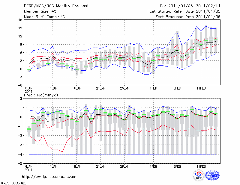 安 庆 (LAT:30.53 LON:117.05) 2011-01-06        预测
