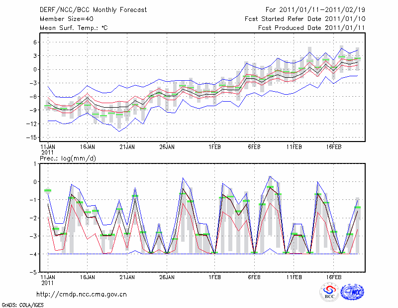 若 羌 (LAT:39.03 LON:88.17) 2011-01-11        预测