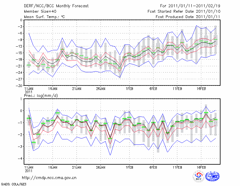 牡 丹 江 (LAT:44.57 LON:129.60) 2011-01-11        预测