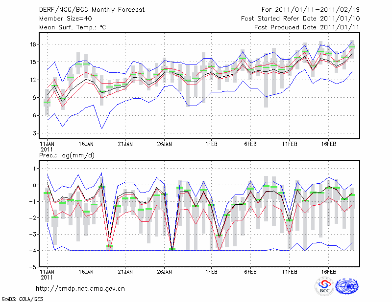 西 昌 (LAT:27.90 LON:102.27) 2011-01-11        预测