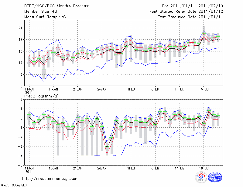 蒙 自 (LAT:23.38 LON:103.38) 2011-01-11        预测