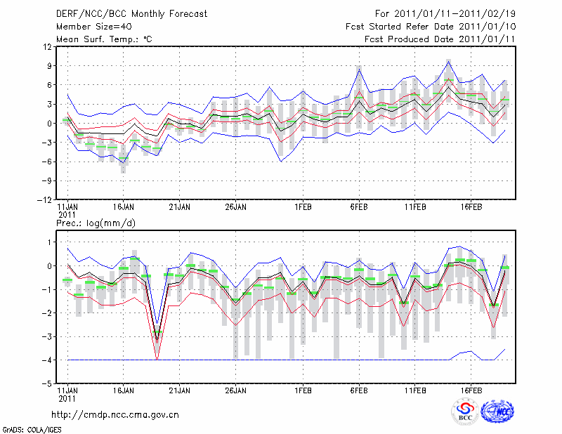 西 安 (LAT:34.30 LON:108.93) 2011-01-11        预测