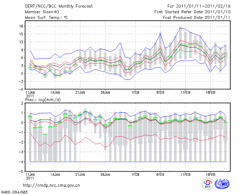 杭 州 (LAT:30.23 LON:120.17) 2011-01-11        预测