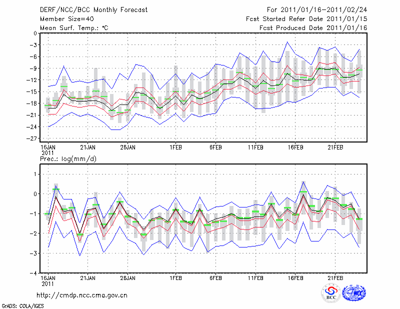 鸡 西 (LAT:45.28 LON:130.95) 2011-01-16        预测