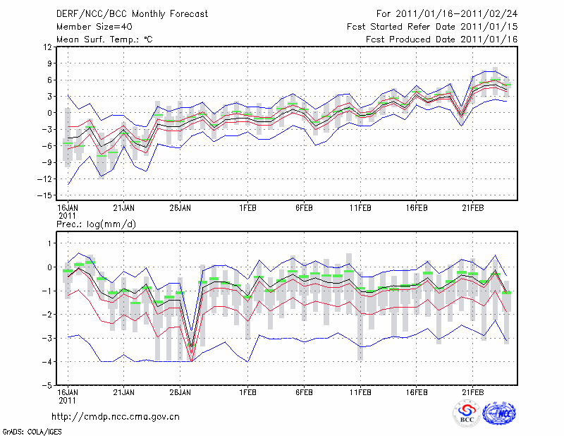 甘 孜 (LAT:31.62 LON:100.00) 2011-01-16        预测
