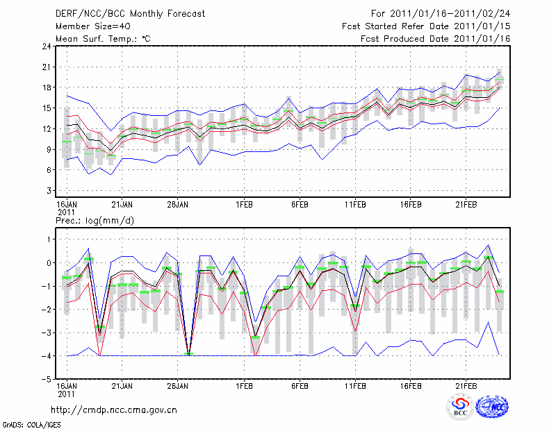 西 昌 (LAT:27.90 LON:102.27) 2011-01-16        预测