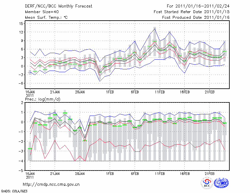 东 台 (LAT:32.87 LON:120.32) 2011-01-16        预测