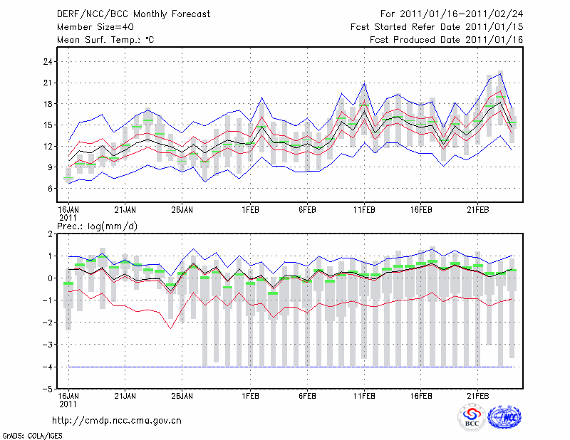 福 州 (LAT:26.08 LON:119.28) 2011-01-16        预测