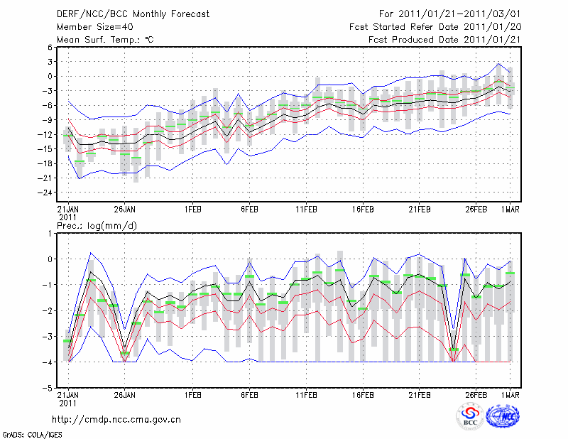 呼和浩特 (LAT:40.82 LON:111.68) 2011-01-21        预测
